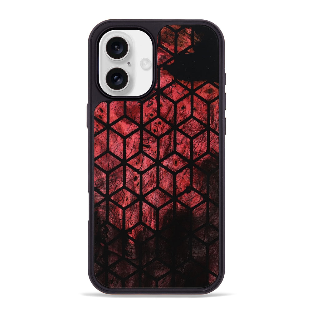 Ian has a striking pattern of hexagons filled with rich shades of red and black. The dyed wood creates an eye-catching design that draws the viewer in.