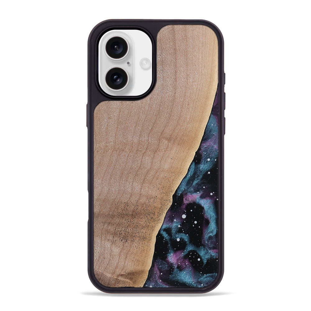 Aspyn has a smooth, warm surface that showcases the natural grain of the Maple wood. The light tones of the wood beautifully contrast with the dark, cosmic background, creating a calming effect.