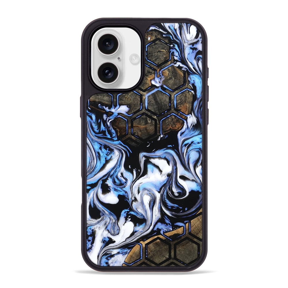 Isai has beautiful Buckeye wood with swirling patterns in blue and white. The hexagonal shapes create a nice contrast, adding a playful touch to the art.