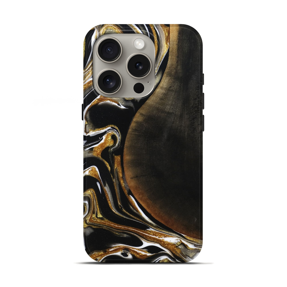 Our Live Edge cases are made from an amazing combination of stabilized wood burl and colored resin. Our stabilization process hardens the wood to protect against cracks and breaks. We do every step of the process at our shop in Northern Indiana. Perfectly fits the iPhone 16 Pro.