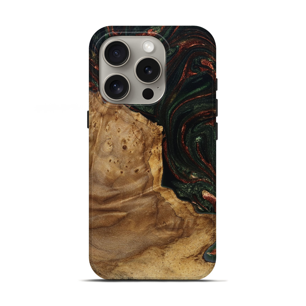 Our Live Edge cases are made from an amazing combination of stabilized wood burl and colored resin. Our stabilization process hardens the wood to protect against cracks and breaks. We do every step of the process at our shop in Northern Indiana. Perfectly fits the iPhone 16 Pro.