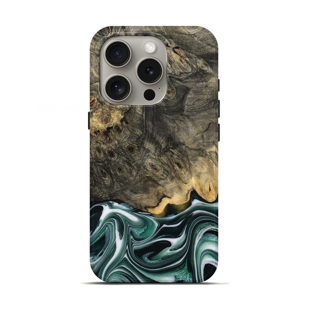 Our Live Edge cases are made from an amazing combination of stabilized wood burl and colored resin. Our stabilization process hardens the wood to protect against cracks and breaks. We do every step of the process at our shop in Northern Indiana. Perfectly fits the iPhone 16 Pro.