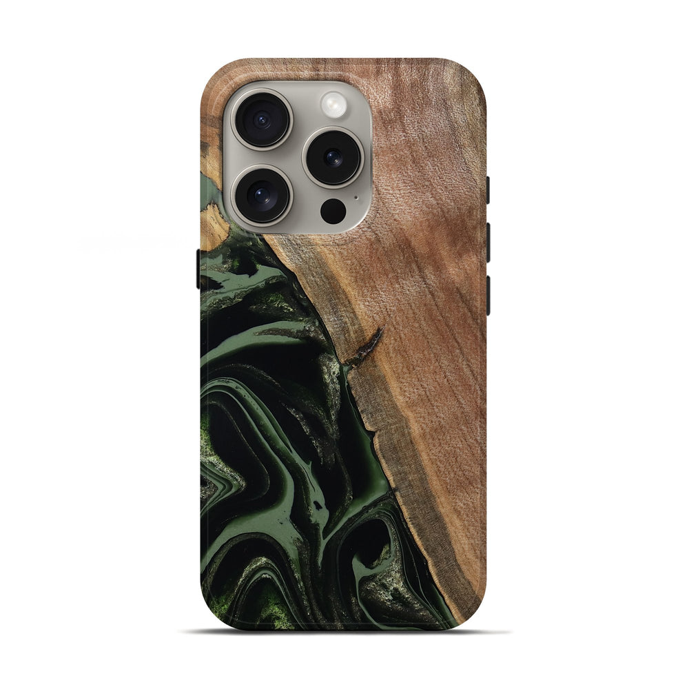 Our Live Edge cases are made from an amazing combination of stabilized wood burl and colored resin. Our stabilization process hardens the wood to protect against cracks and breaks. We do every step of the process at our shop in Northern Indiana. Perfectly fits the iPhone 16 Pro.