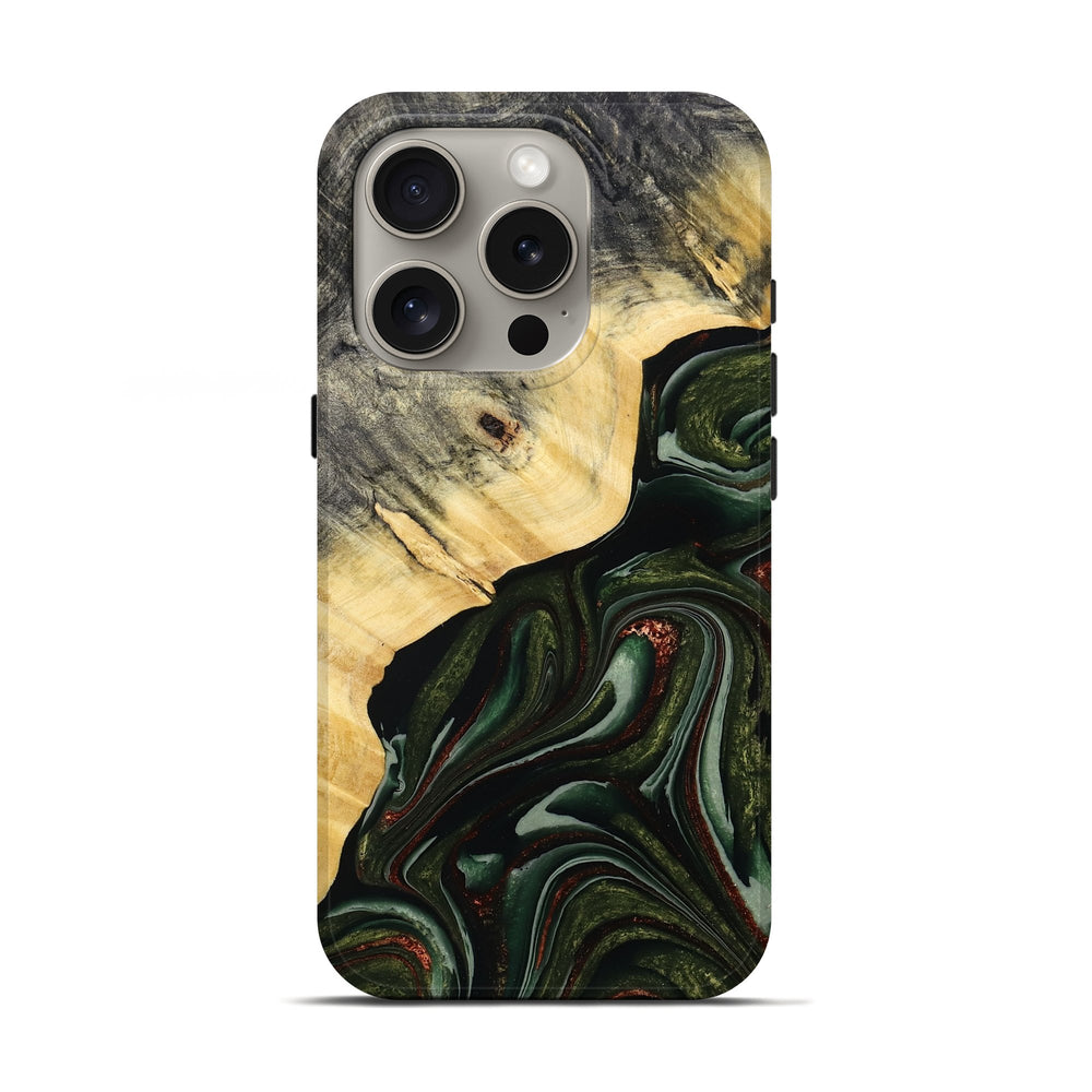 Our Live Edge cases are made from an amazing combination of stabilized wood burl and colored resin. Our stabilization process hardens the wood to protect against cracks and breaks. We do every step of the process at our shop in Northern Indiana. Perfectly fits the iPhone 16 Pro.