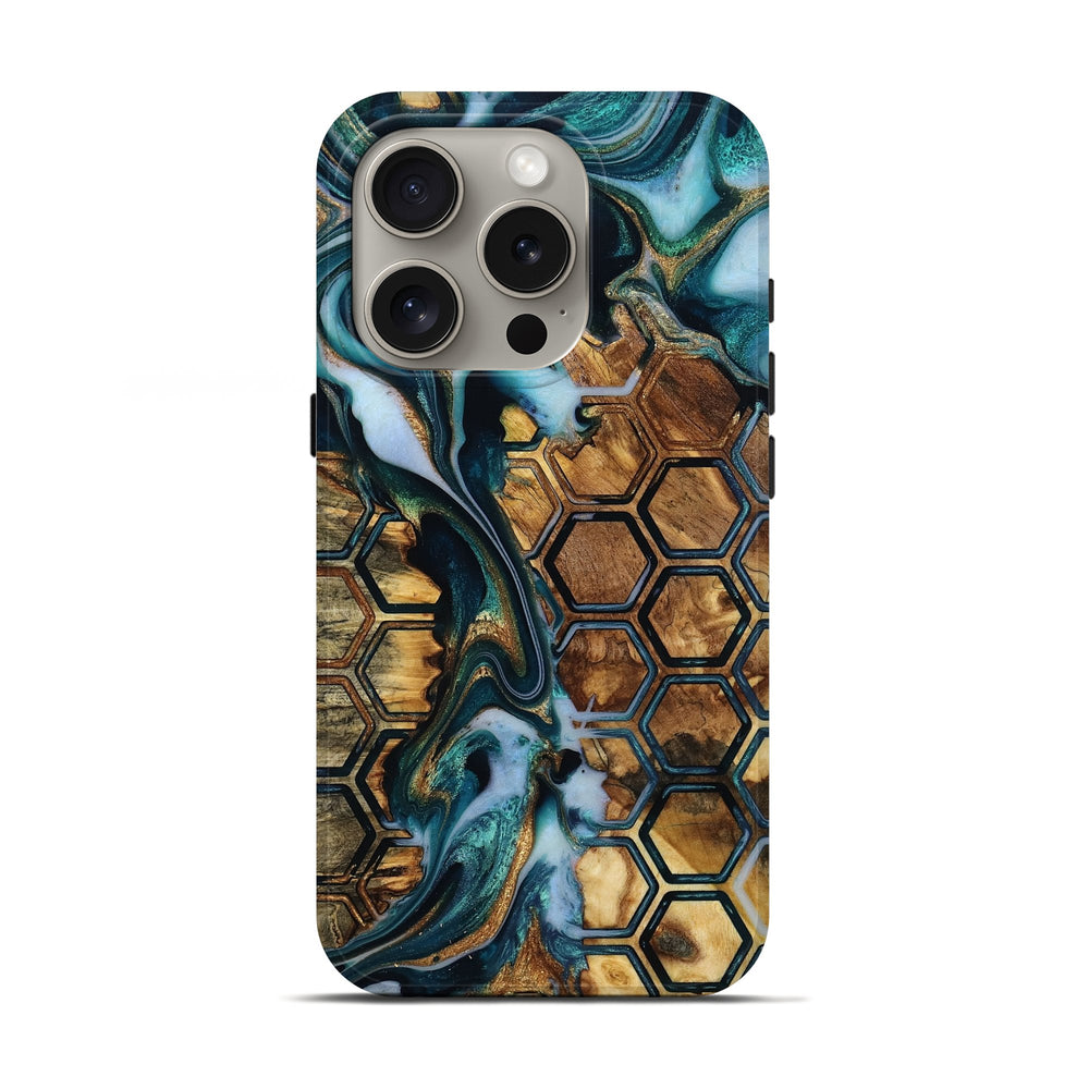 Our Live Edge cases are made from an amazing combination of stabilized wood burl and colored resin. Our stabilization process hardens the wood to protect against cracks and breaks. We do every step of the process at our shop in Northern Indiana. Perfectly fits the iPhone 16 Pro.