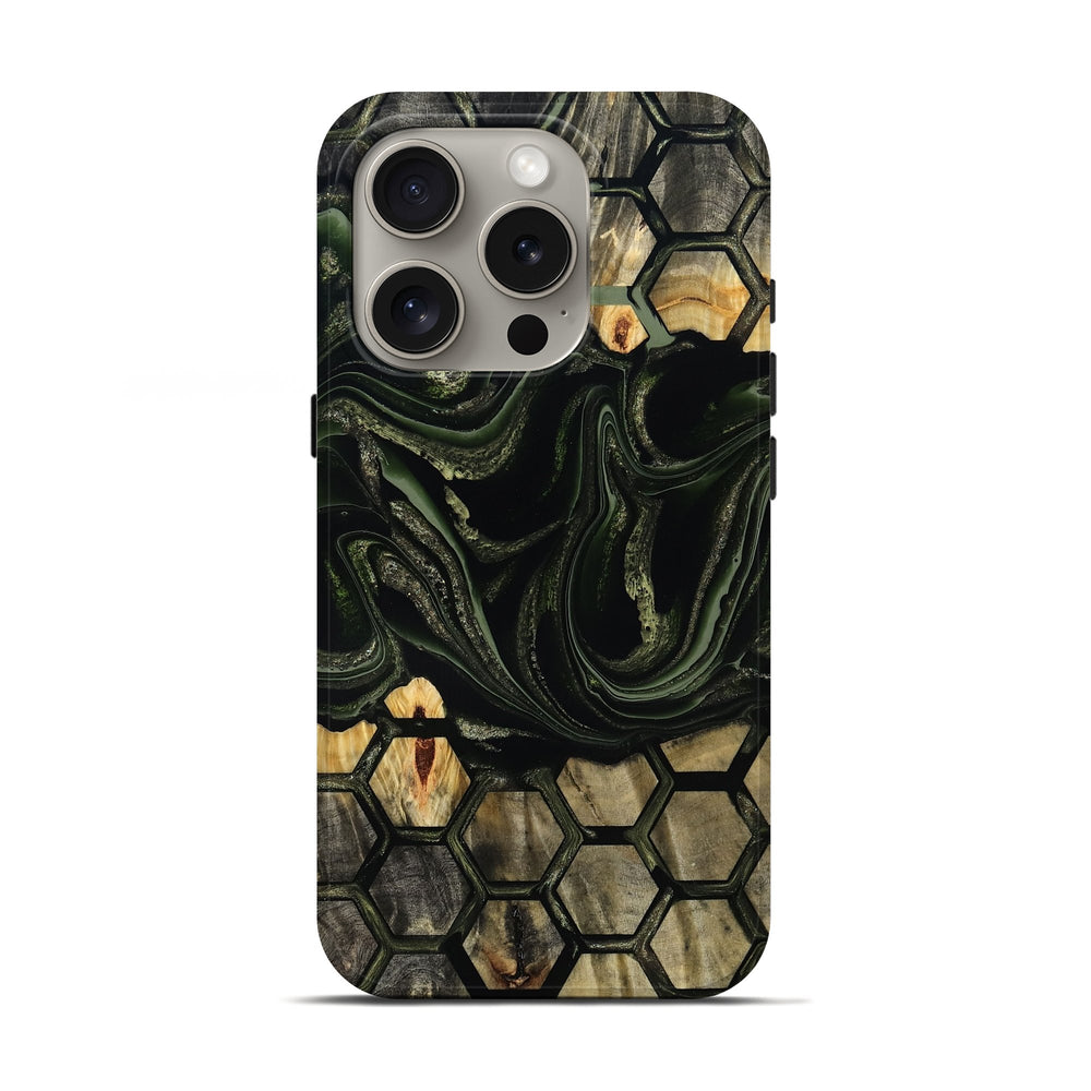 Our Live Edge cases are made from an amazing combination of stabilized wood burl and colored resin. Our stabilization process hardens the wood to protect against cracks and breaks. We do every step of the process at our shop in Northern Indiana. Perfectly fits the iPhone 16 Pro.