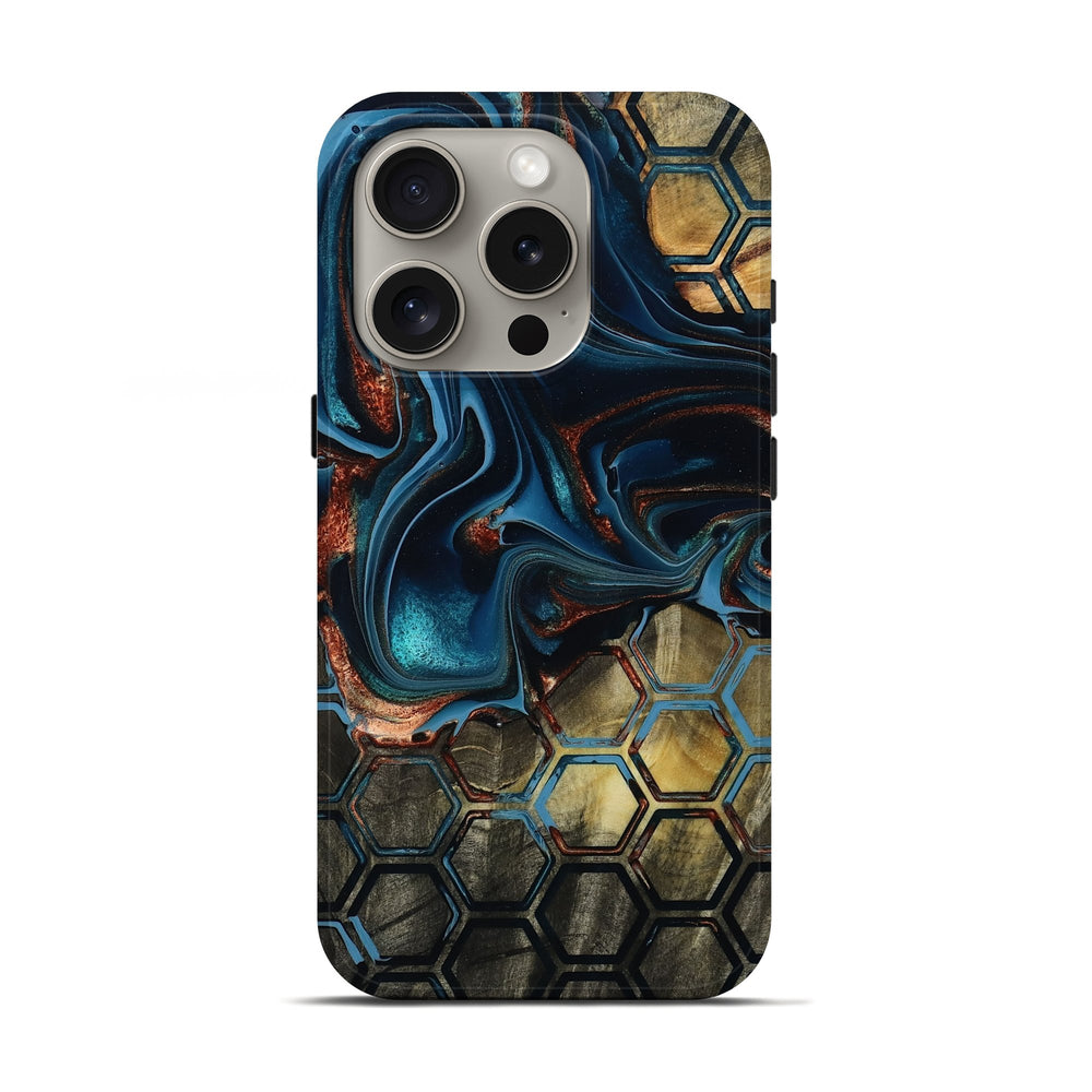 Our Live Edge cases are made from an amazing combination of stabilized wood burl and colored resin. Our stabilization process hardens the wood to protect against cracks and breaks. We do every step of the process at our shop in Northern Indiana. Perfectly fits the iPhone 16 Pro.