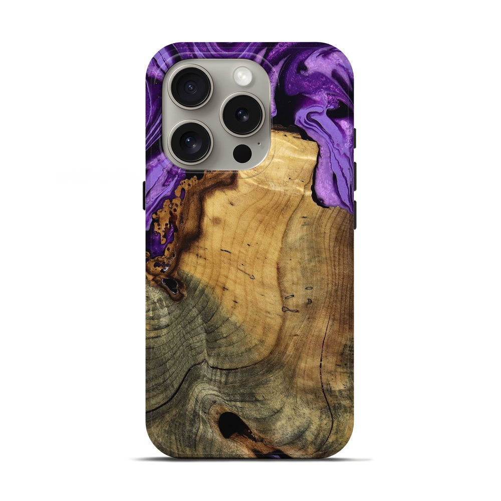 Our Live Edge cases are made from an amazing combination of stabilized wood burl and colored resin. Our stabilization process hardens the wood to protect against cracks and breaks. We do every step of the process at our shop in Northern Indiana. Perfectly fits the iPhone 16 Pro.