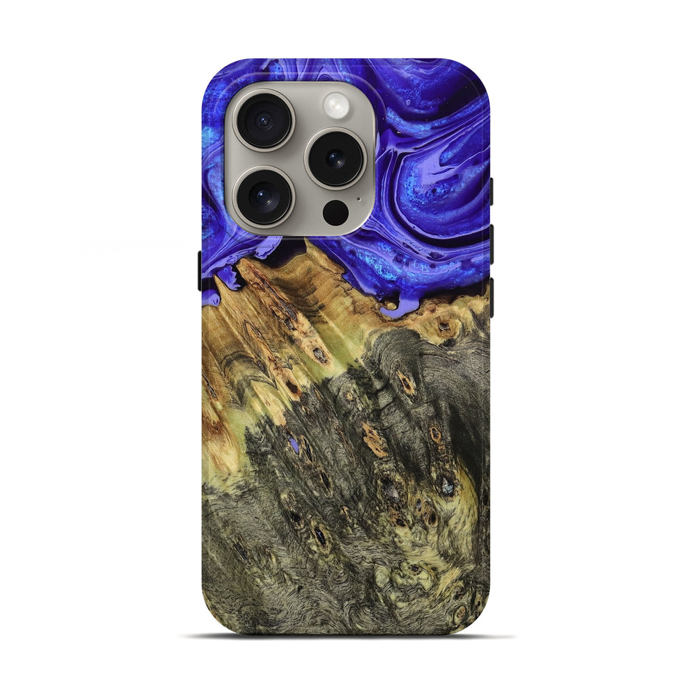 Our Live Edge cases are made from an amazing combination of stabilized wood burl and colored resin. Our stabilization process hardens the wood to protect against cracks and breaks. We do every step of the process at our shop in Northern Indiana. Perfectly fits the iPhone 16 Pro.