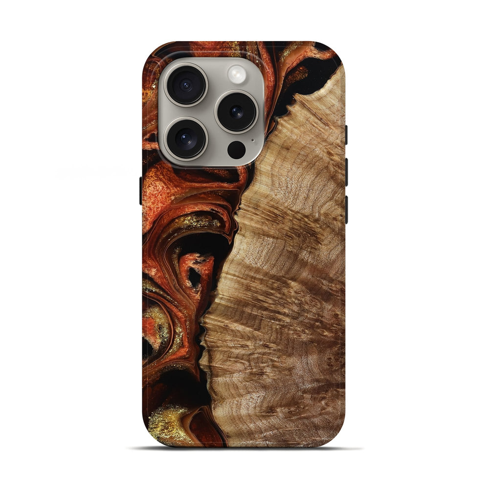 Our Live Edge cases are made from an amazing combination of stabilized wood burl and colored resin. Our stabilization process hardens the wood to protect against cracks and breaks. We do every step of the process at our shop in Northern Indiana. Perfectly fits the iPhone 16 Pro.
