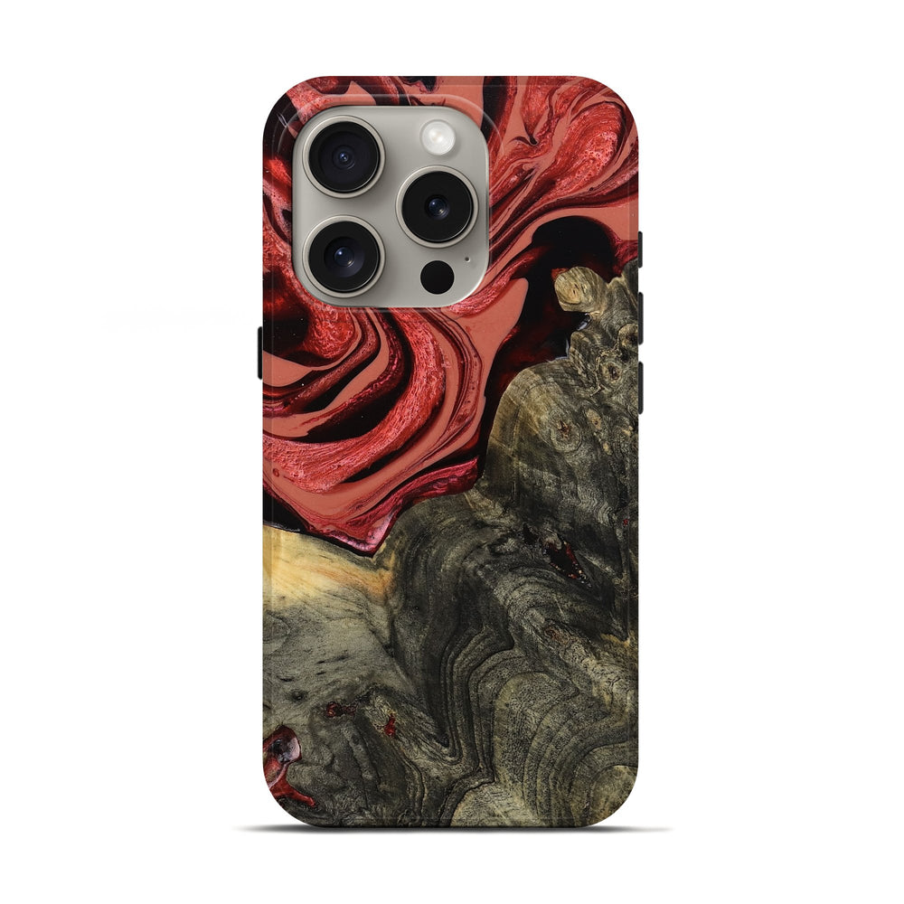 Our Live Edge cases are made from an amazing combination of stabilized wood burl and colored resin. Our stabilization process hardens the wood to protect against cracks and breaks. We do every step of the process at our shop in Northern Indiana. Perfectly fits the iPhone 16 Pro.