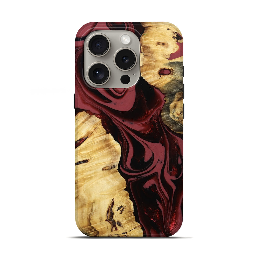 Our Live Edge cases are made from an amazing combination of stabilized wood burl and colored resin. Our stabilization process hardens the wood to protect against cracks and breaks. We do every step of the process at our shop in Northern Indiana. Perfectly fits the iPhone 16 Pro.