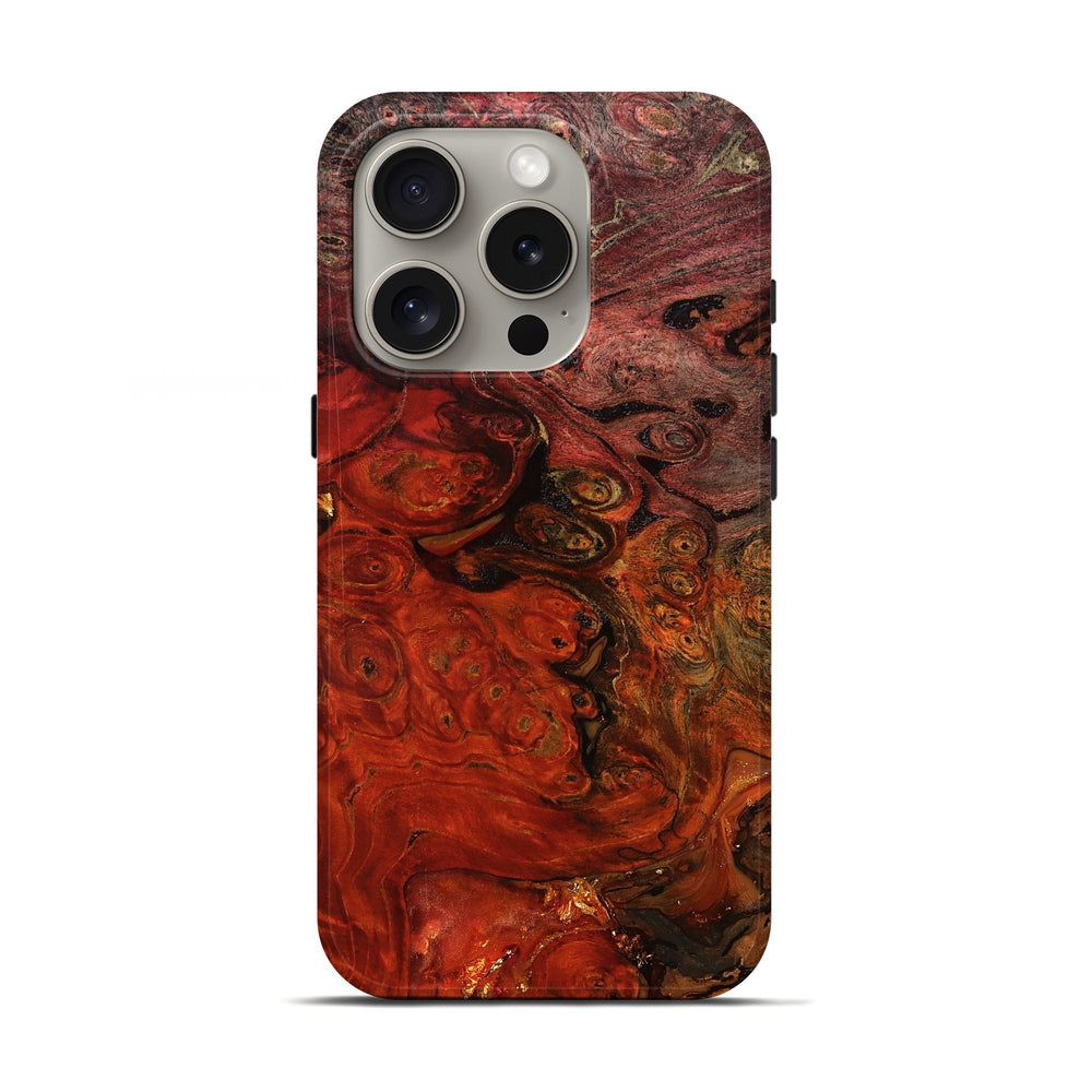 Our Live Edge cases are made from an amazing combination of stabilized wood burl and colored resin. Our stabilization process hardens the wood to protect against cracks and breaks. We do every step of the process at our shop in Northern Indiana. Perfectly fits the iPhone 16 Pro.