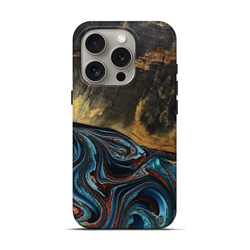 Our Live Edge cases are made from an amazing combination of stabilized wood burl and colored resin. Our stabilization process hardens the wood to protect against cracks and breaks. We do every step of the process at our shop in Northern Indiana. Perfectly fits the iPhone 16 Pro.