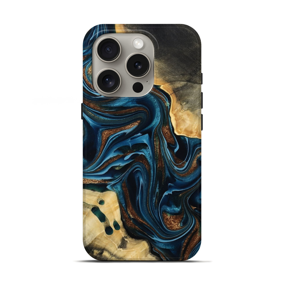 Our Live Edge cases are made from an amazing combination of stabilized wood burl and colored resin. Our stabilization process hardens the wood to protect against cracks and breaks. We do every step of the process at our shop in Northern Indiana. Perfectly fits the iPhone 16 Pro.