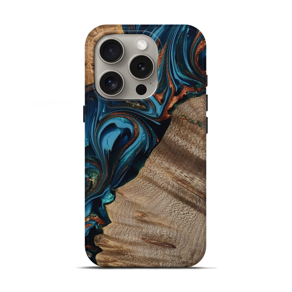Our Live Edge cases are made from an amazing combination of stabilized wood burl and colored resin. Our stabilization process hardens the wood to protect against cracks and breaks. We do every step of the process at our shop in Northern Indiana. Perfectly fits the iPhone 16 Pro.