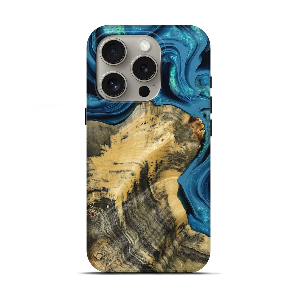 Our Live Edge cases are made from an amazing combination of stabilized wood burl and colored resin. Our stabilization process hardens the wood to protect against cracks and breaks. We do every step of the process at our shop in Northern Indiana. Perfectly fits the iPhone 16 Pro.