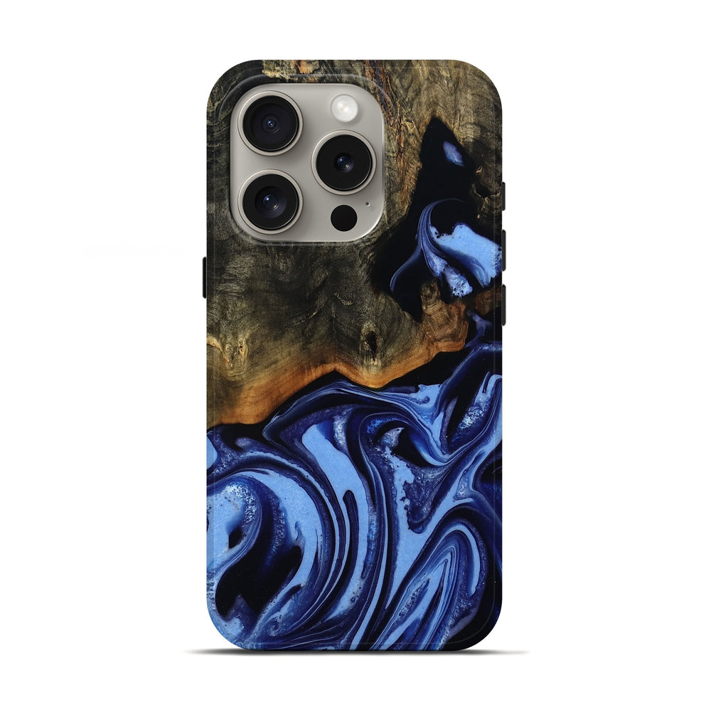 Our Live Edge cases are made from an amazing combination of stabilized wood burl and colored resin. Our stabilization process hardens the wood to protect against cracks and breaks. We do every step of the process at our shop in Northern Indiana. Perfectly fits the iPhone 16 Pro.