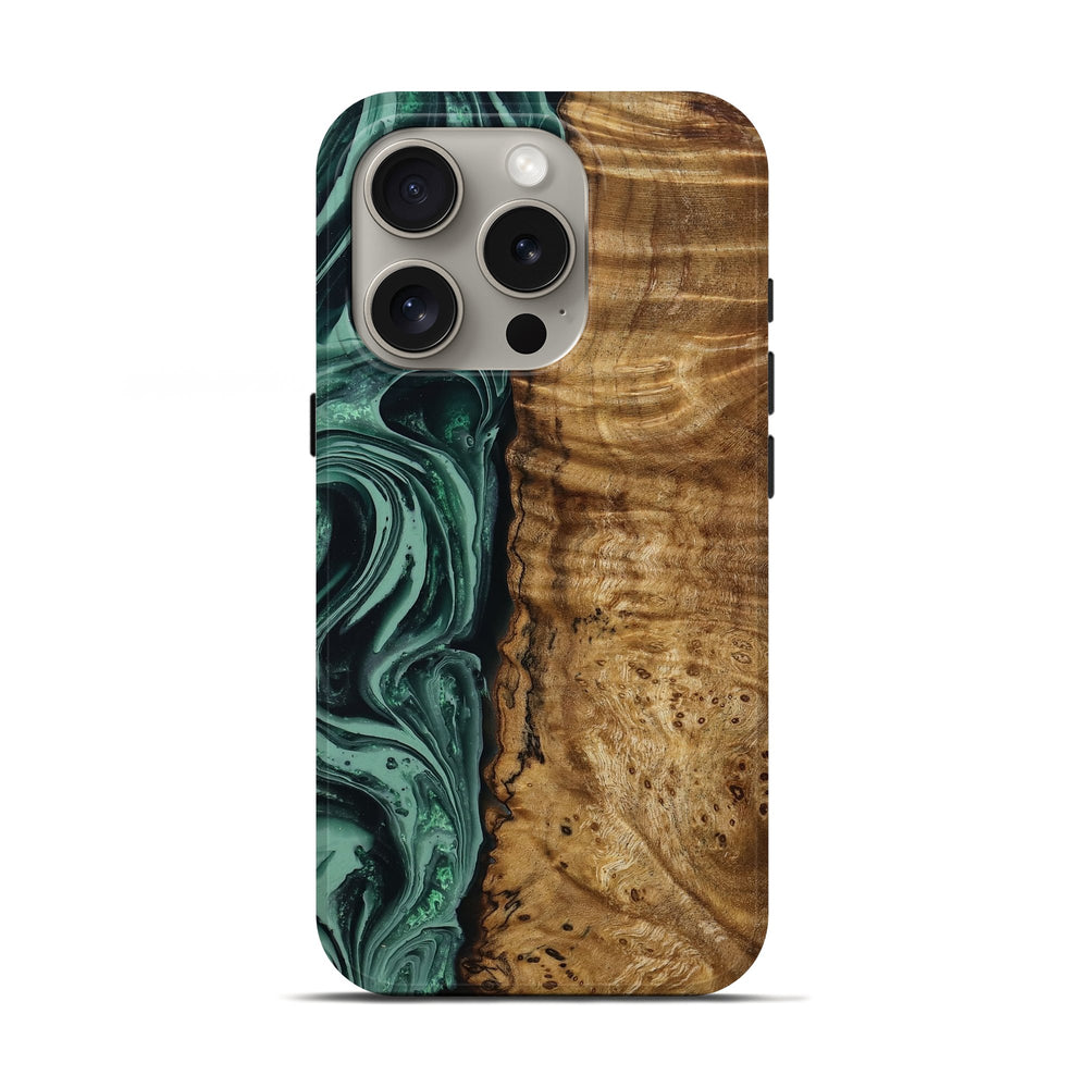 Our Live Edge cases are made from an amazing combination of stabilized wood burl and colored resin. Our stabilization process hardens the wood to protect against cracks and breaks. We do every step of the process at our shop in Northern Indiana. Perfectly fits the iPhone 16 Pro.