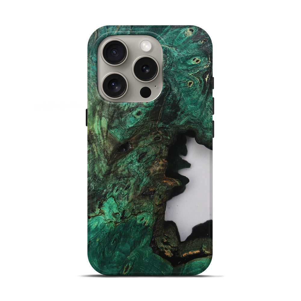 Our Live Edge cases are made from an amazing combination of stabilized wood burl and colored resin. Our stabilization process hardens the wood to protect against cracks and breaks. We do every step of the process at our shop in Northern Indiana. Perfectly fits the iPhone 16 Pro.
