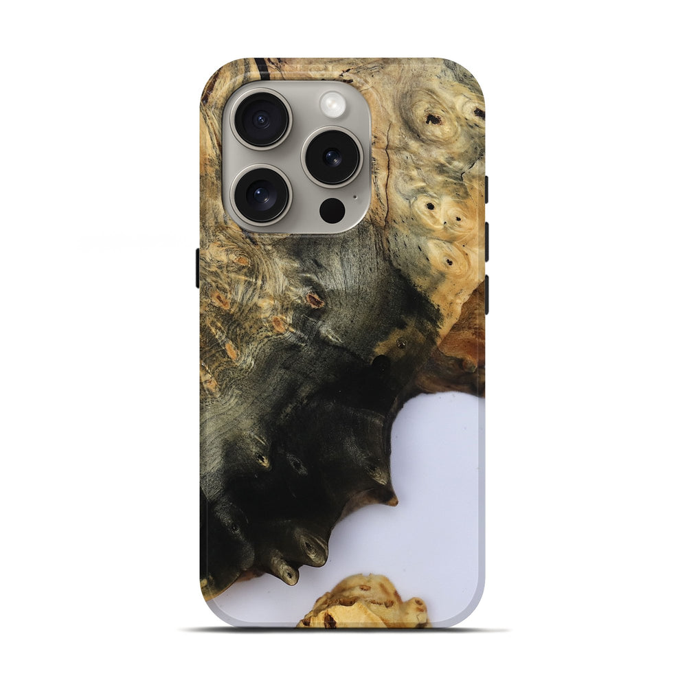 Our Live Edge cases are made from an amazing combination of stabilized wood burl and colored resin. Our stabilization process hardens the wood to protect against cracks and breaks. We do every step of the process at our shop in Northern Indiana. Perfectly fits the iPhone 16 Pro.