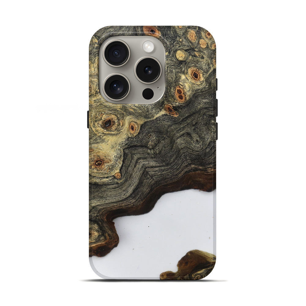 Our Live Edge cases are made from an amazing combination of stabilized wood burl and colored resin. Our stabilization process hardens the wood to protect against cracks and breaks. We do every step of the process at our shop in Northern Indiana. Perfectly fits the iPhone 16 Pro.