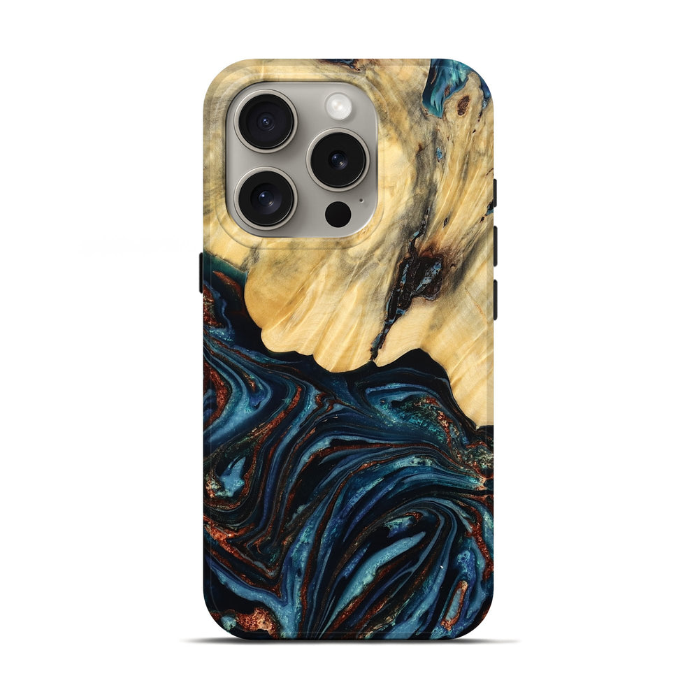 Our Live Edge cases are made from an amazing combination of stabilized wood burl and colored resin. Our stabilization process hardens the wood to protect against cracks and breaks. We do every step of the process at our shop in Northern Indiana. Perfectly fits the iPhone 16 Pro.