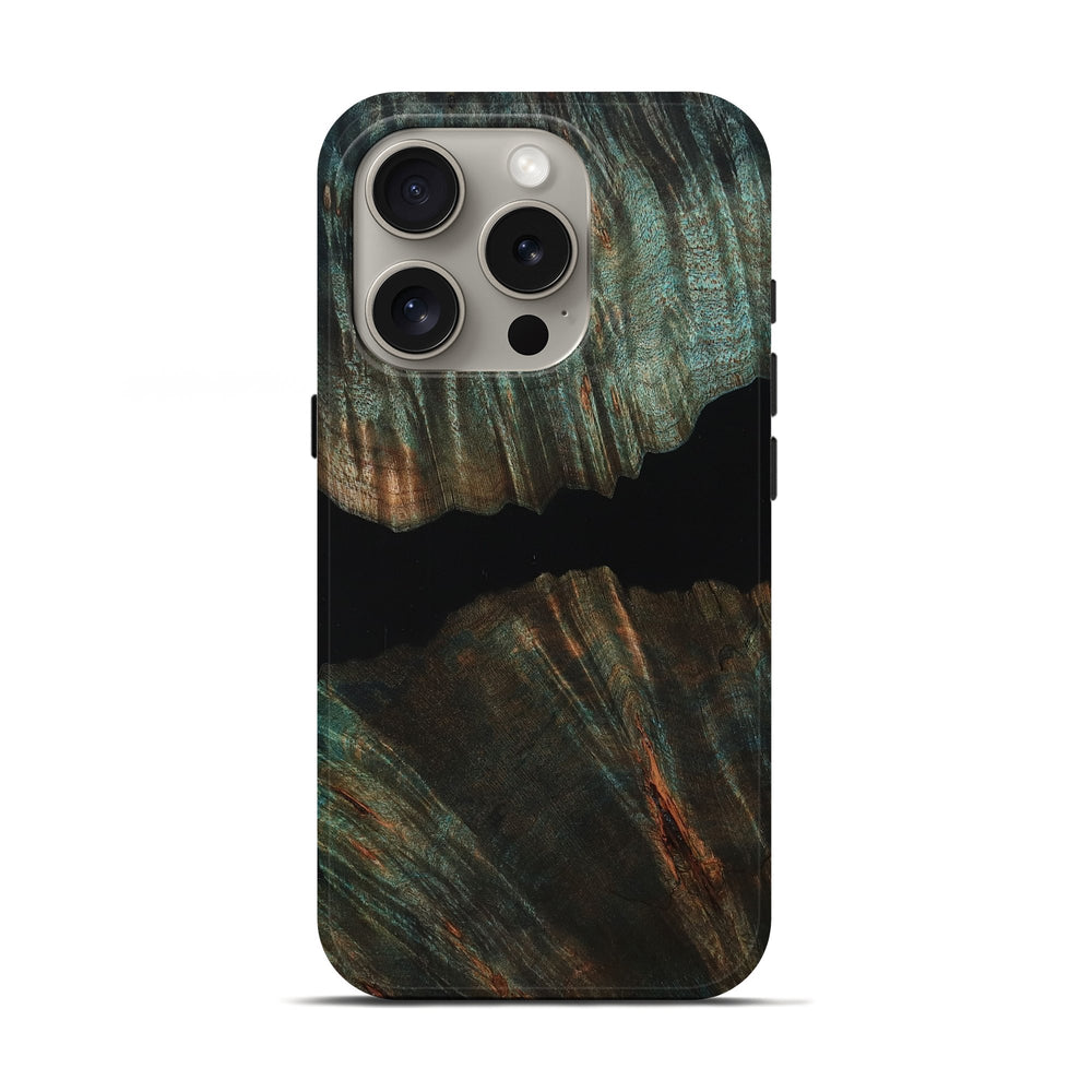 Our Live Edge cases are made from an amazing combination of stabilized wood burl and colored resin. Our stabilization process hardens the wood to protect against cracks and breaks. We do every step of the process at our shop in Northern Indiana. Perfectly fits the iPhone 16 Pro.