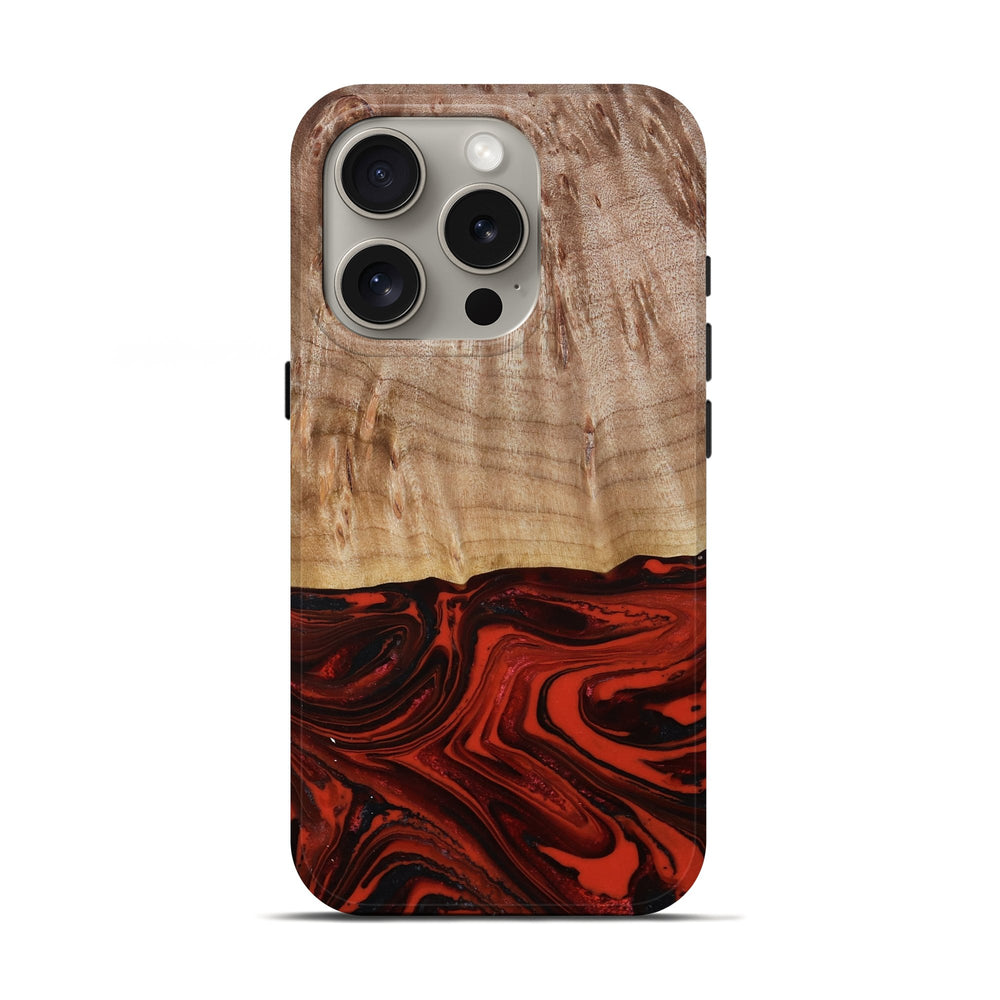 Our Live Edge cases are made from an amazing combination of stabilized wood burl and colored resin. Our stabilization process hardens the wood to protect against cracks and breaks. We do every step of the process at our shop in Northern Indiana. Perfectly fits the iPhone 16 Pro.