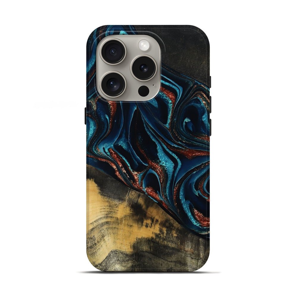 Our Live Edge cases are made from an amazing combination of stabilized wood burl and colored resin. Our stabilization process hardens the wood to protect against cracks and breaks. We do every step of the process at our shop in Northern Indiana. Perfectly fits the iPhone 16 Pro.