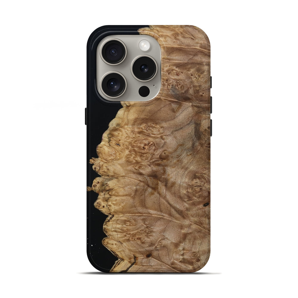 Our Live Edge cases are made from an amazing combination of stabilized wood burl and colored resin. Our stabilization process hardens the wood to protect against cracks and breaks. We do every step of the process at our shop in Northern Indiana. Perfectly fits the iPhone 16 Pro.