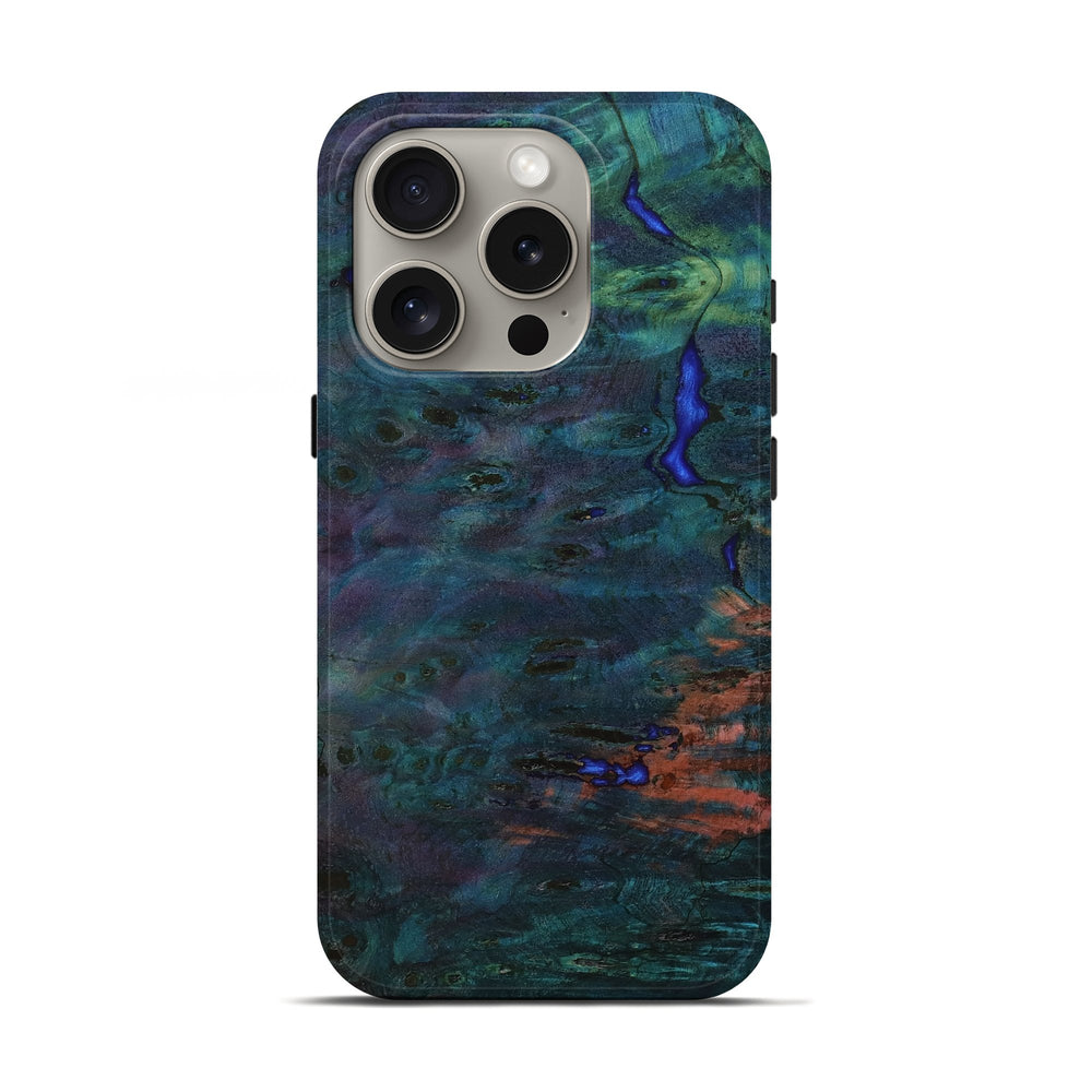 Our Live Edge cases are made from an amazing combination of stabilized wood burl and colored resin. Our stabilization process hardens the wood to protect against cracks and breaks. We do every step of the process at our shop in Northern Indiana. Perfectly fits the iPhone 16 Pro.
