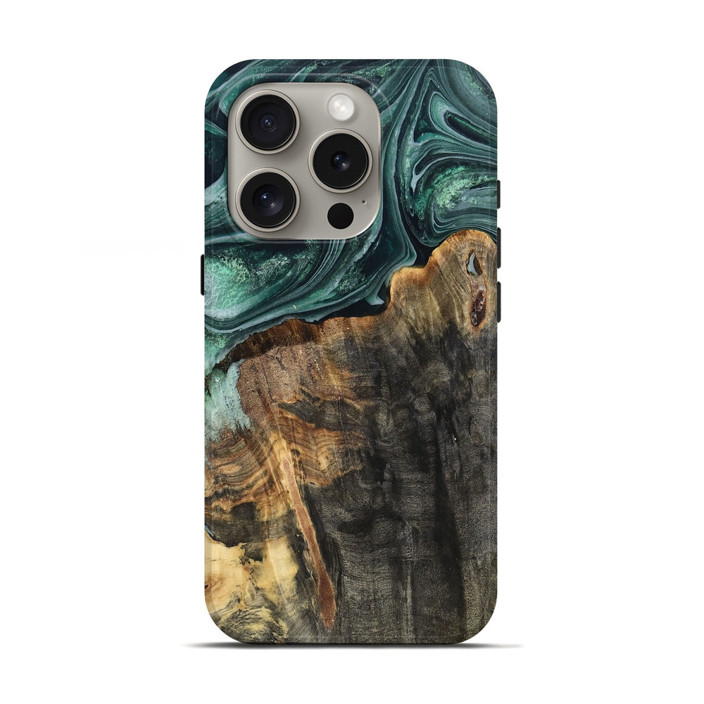 Our Live Edge cases are made from an amazing combination of stabilized wood burl and colored resin. Our stabilization process hardens the wood to protect against cracks and breaks. We do every step of the process at our shop in Northern Indiana. Perfectly fits the iPhone 16 Pro.