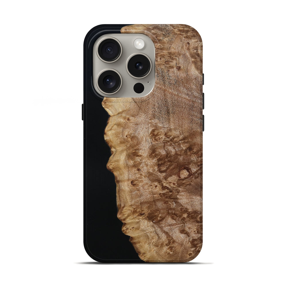 Our Live Edge cases are made from an amazing combination of stabilized wood burl and colored resin. Our stabilization process hardens the wood to protect against cracks and breaks. We do every step of the process at our shop in Northern Indiana. Perfectly fits the iPhone 16 Pro.