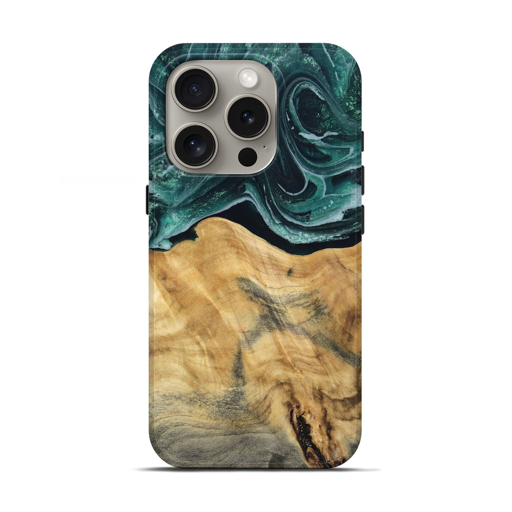 Our Live Edge cases are made from an amazing combination of stabilized wood burl and colored resin. Our stabilization process hardens the wood to protect against cracks and breaks. We do every step of the process at our shop in Northern Indiana. Perfectly fits the iPhone 16 Pro.
