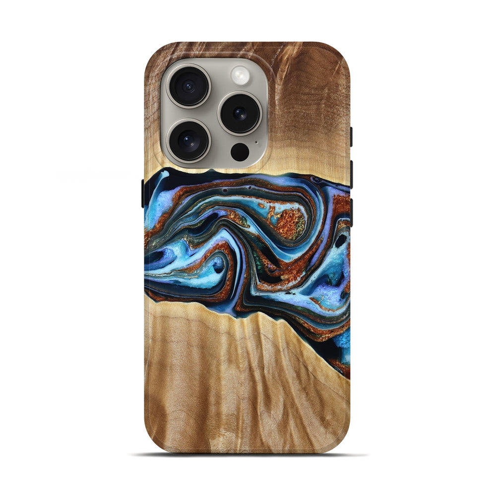 Our Live Edge cases are made from an amazing combination of stabilized wood burl and colored resin. Our stabilization process hardens the wood to protect against cracks and breaks. We do every step of the process at our shop in Northern Indiana. Perfectly fits the iPhone 16 Pro.
