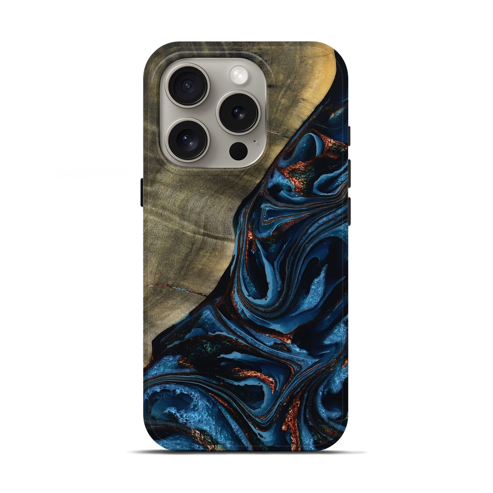 Our Live Edge cases are made from an amazing combination of stabilized wood burl and colored resin. Our stabilization process hardens the wood to protect against cracks and breaks. We do every step of the process at our shop in Northern Indiana. Perfectly fits the iPhone 16 Pro.