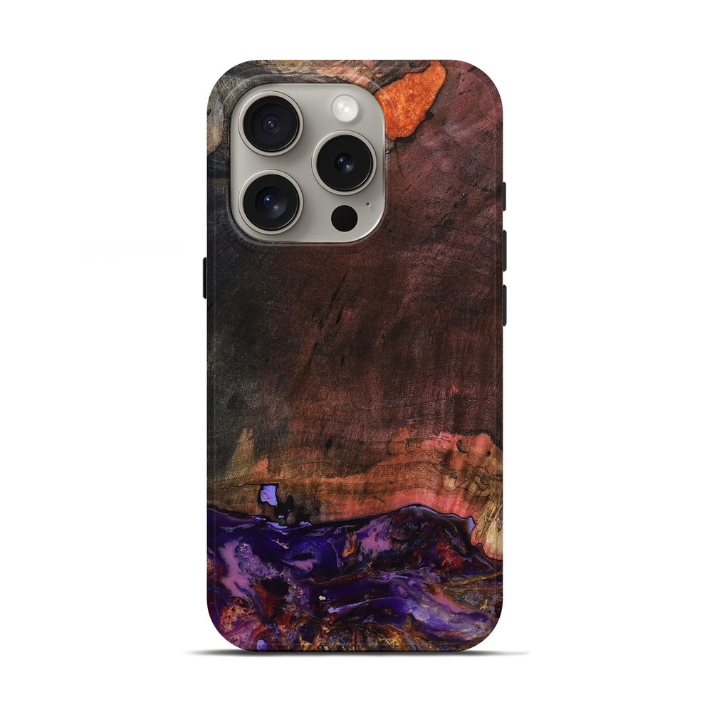 Our Live Edge cases are made from an amazing combination of stabilized wood burl and colored resin. Our stabilization process hardens the wood to protect against cracks and breaks. We do every step of the process at our shop in Northern Indiana. Perfectly fits the iPhone 16 Pro.