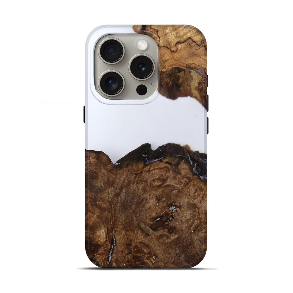 Our Live Edge cases are made from an amazing combination of stabilized wood burl and colored resin. Our stabilization process hardens the wood to protect against cracks and breaks. We do every step of the process at our shop in Northern Indiana. Perfectly fits the iPhone 16 Pro.