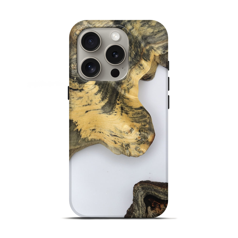 Our Live Edge cases are made from an amazing combination of stabilized wood burl and colored resin. Our stabilization process hardens the wood to protect against cracks and breaks. We do every step of the process at our shop in Northern Indiana. Perfectly fits the iPhone 16 Pro.