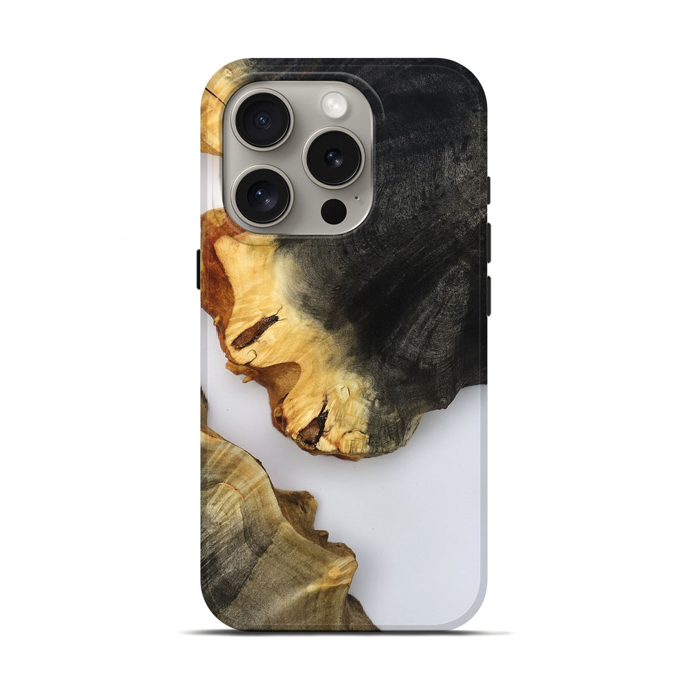 Our Live Edge cases are made from an amazing combination of stabilized wood burl and colored resin. Our stabilization process hardens the wood to protect against cracks and breaks. We do every step of the process at our shop in Northern Indiana. Perfectly fits the iPhone 16 Pro.