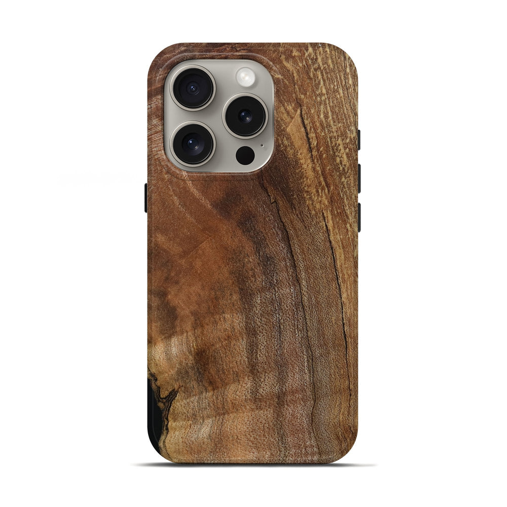 Our Live Edge cases are made from an amazing combination of stabilized wood burl and colored resin. Our stabilization process hardens the wood to protect against cracks and breaks. We do every step of the process at our shop in Northern Indiana. Perfectly fits the iPhone 16 Pro.