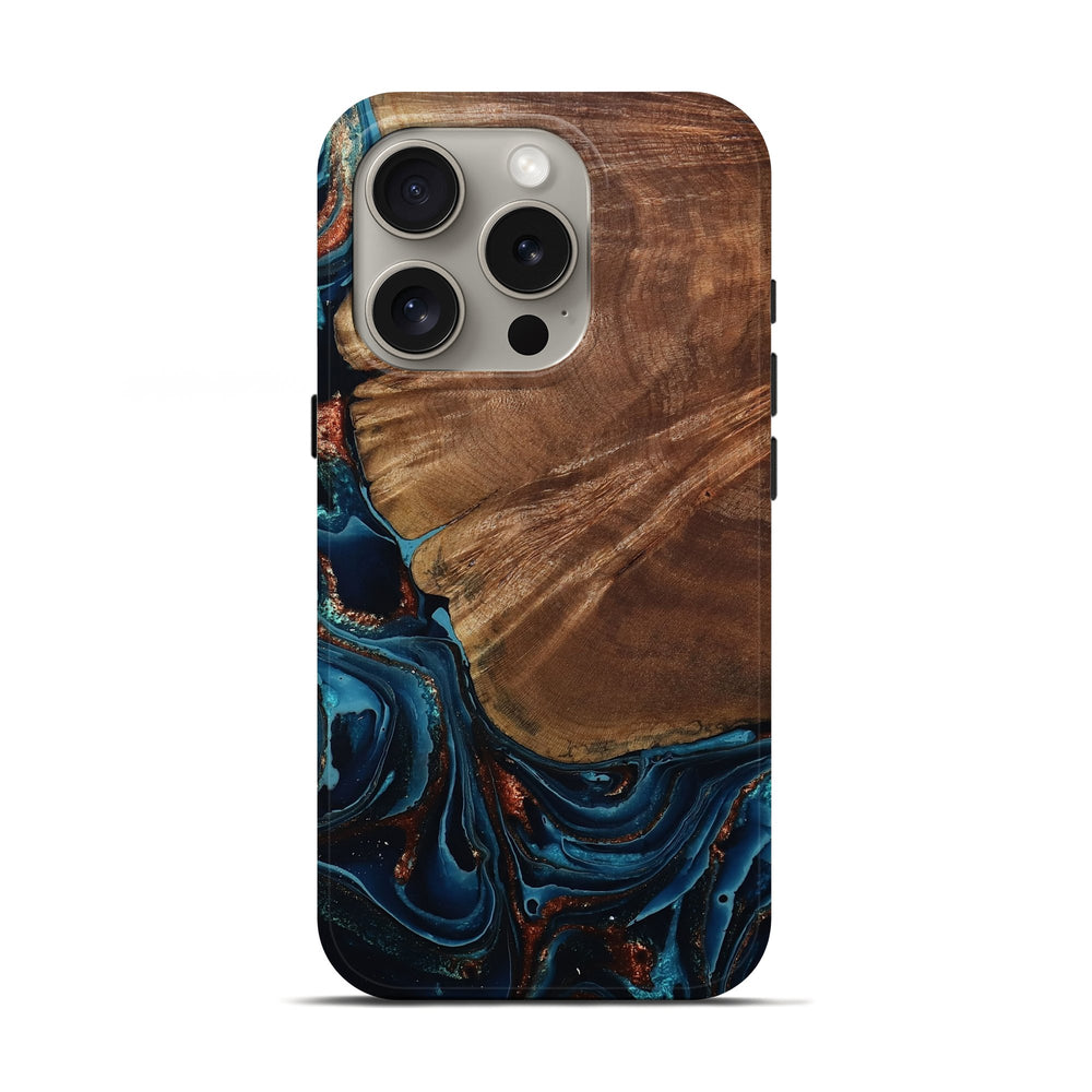 Our Live Edge cases are made from an amazing combination of stabilized wood burl and colored resin. Our stabilization process hardens the wood to protect against cracks and breaks. We do every step of the process at our shop in Northern Indiana. Perfectly fits the iPhone 16 Pro.