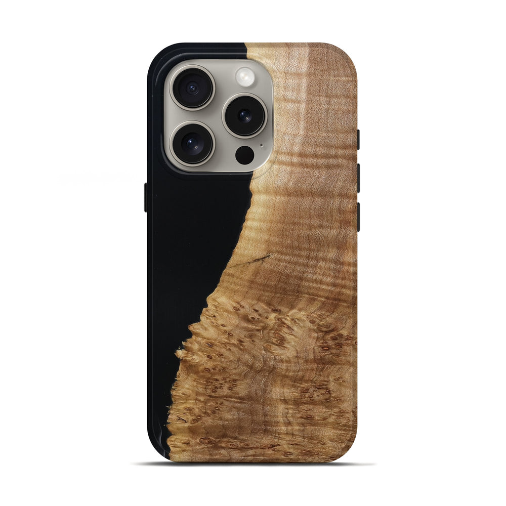 Our Live Edge cases are made from an amazing combination of stabilized wood burl and colored resin. Our stabilization process hardens the wood to protect against cracks and breaks. We do every step of the process at our shop in Northern Indiana. Perfectly fits the iPhone 16 Pro.