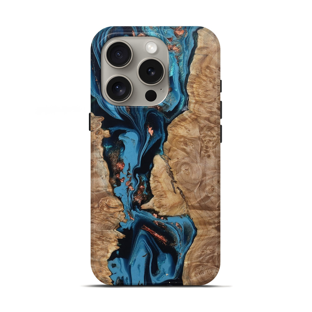 Our Live Edge cases are made from an amazing combination of stabilized wood burl and colored resin. Our stabilization process hardens the wood to protect against cracks and breaks. We do every step of the process at our shop in Northern Indiana. Perfectly fits the iPhone 16 Pro.