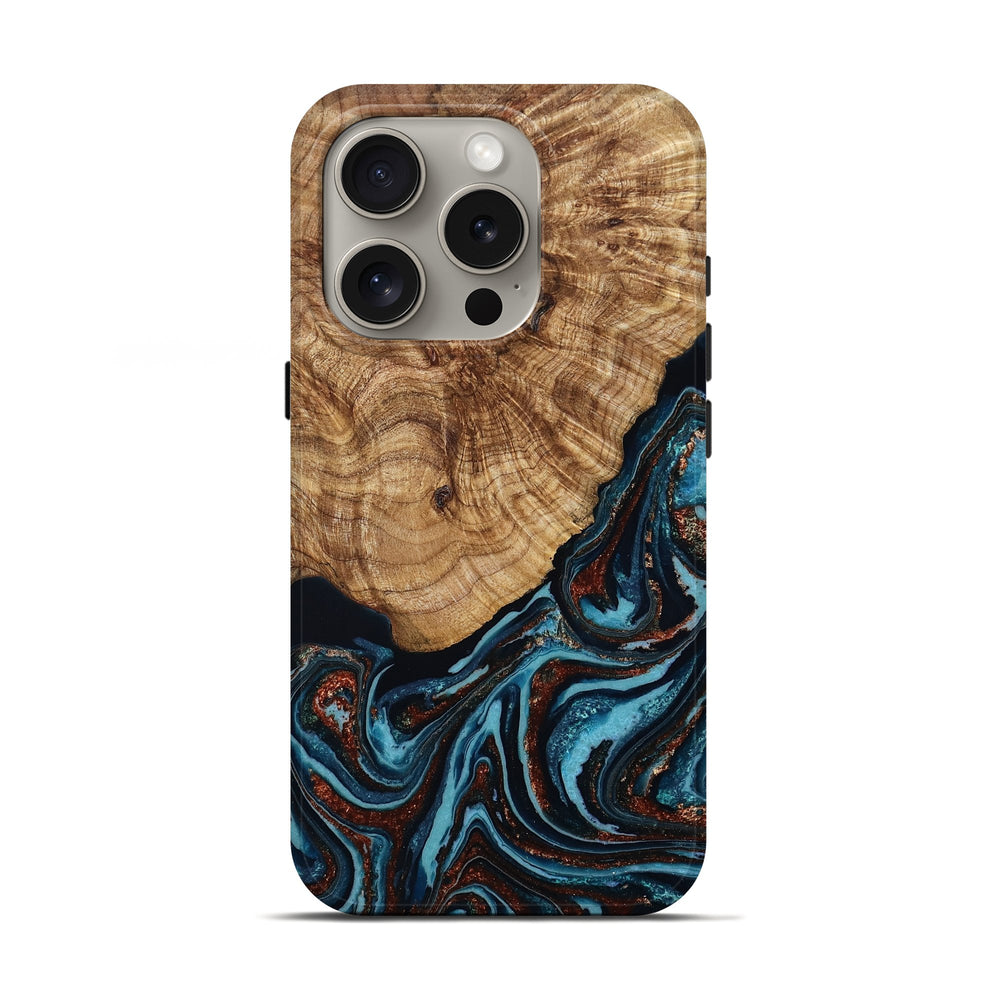 Our Live Edge cases are made from an amazing combination of stabilized wood burl and colored resin. Our stabilization process hardens the wood to protect against cracks and breaks. We do every step of the process at our shop in Northern Indiana. Perfectly fits the iPhone 16 Pro.