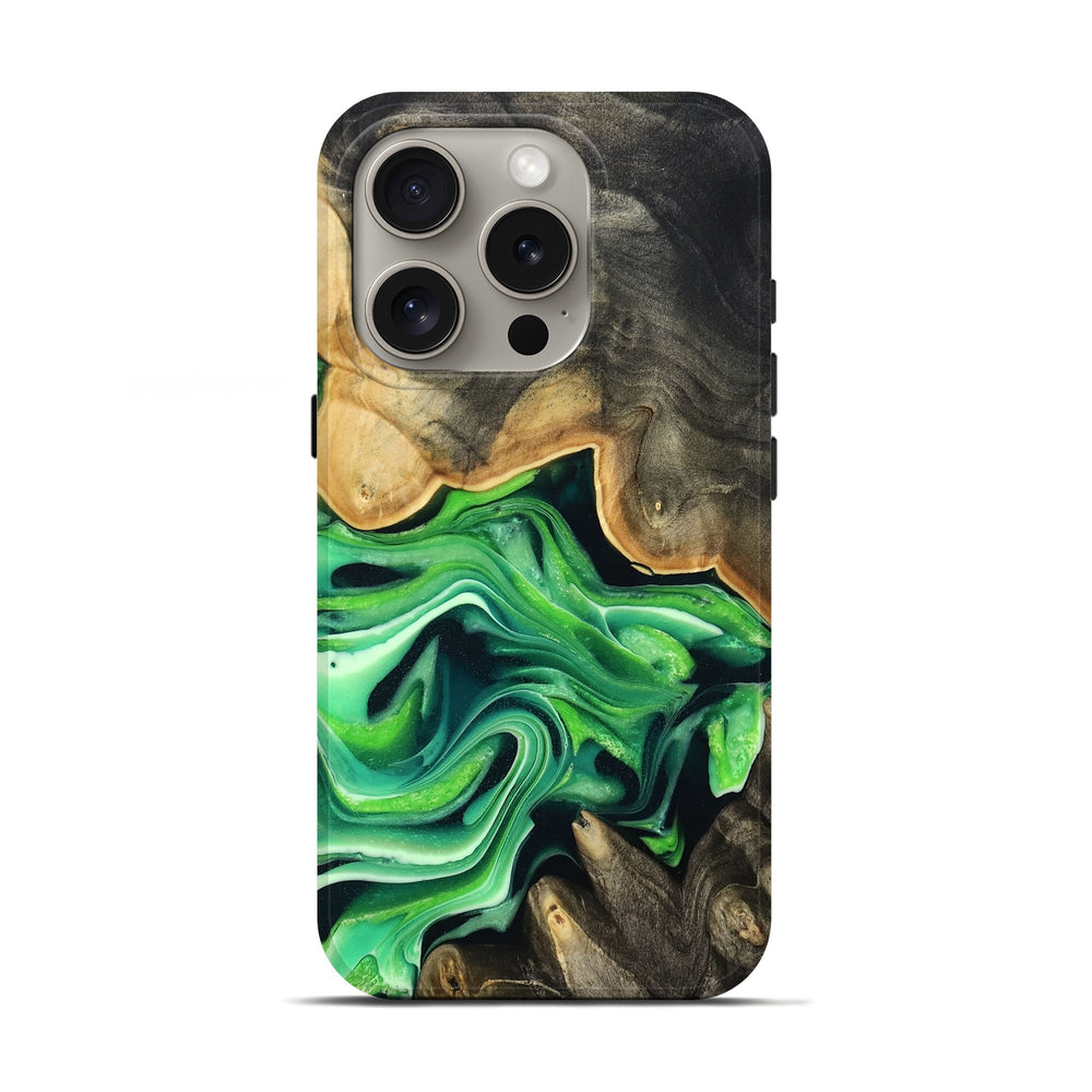 Our Live Edge cases are made from an amazing combination of stabilized wood burl and colored resin. Our stabilization process hardens the wood to protect against cracks and breaks. We do every step of the process at our shop in Northern Indiana. Perfectly fits the iPhone 16 Pro.