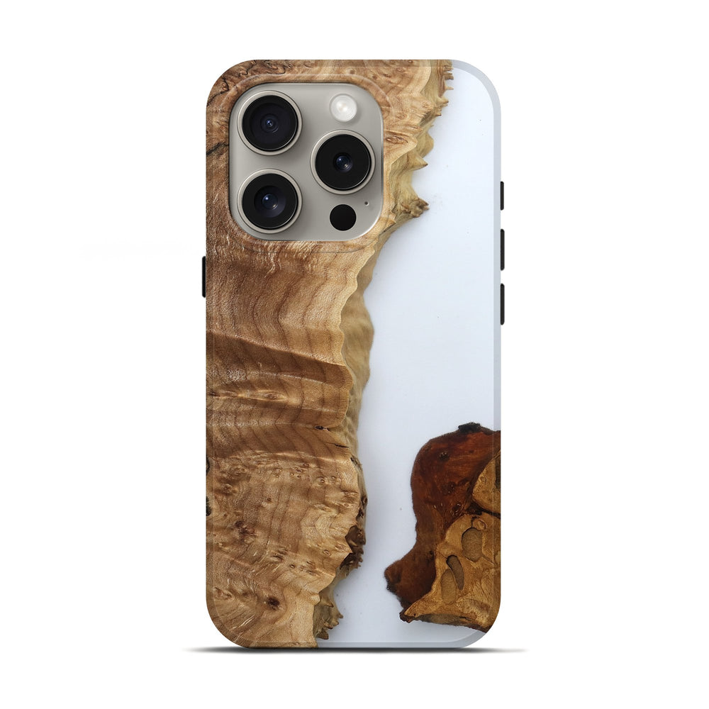Our Live Edge cases are made from an amazing combination of stabilized wood burl and colored resin. Our stabilization process hardens the wood to protect against cracks and breaks. We do every step of the process at our shop in Northern Indiana. Perfectly fits the iPhone 16 Pro.