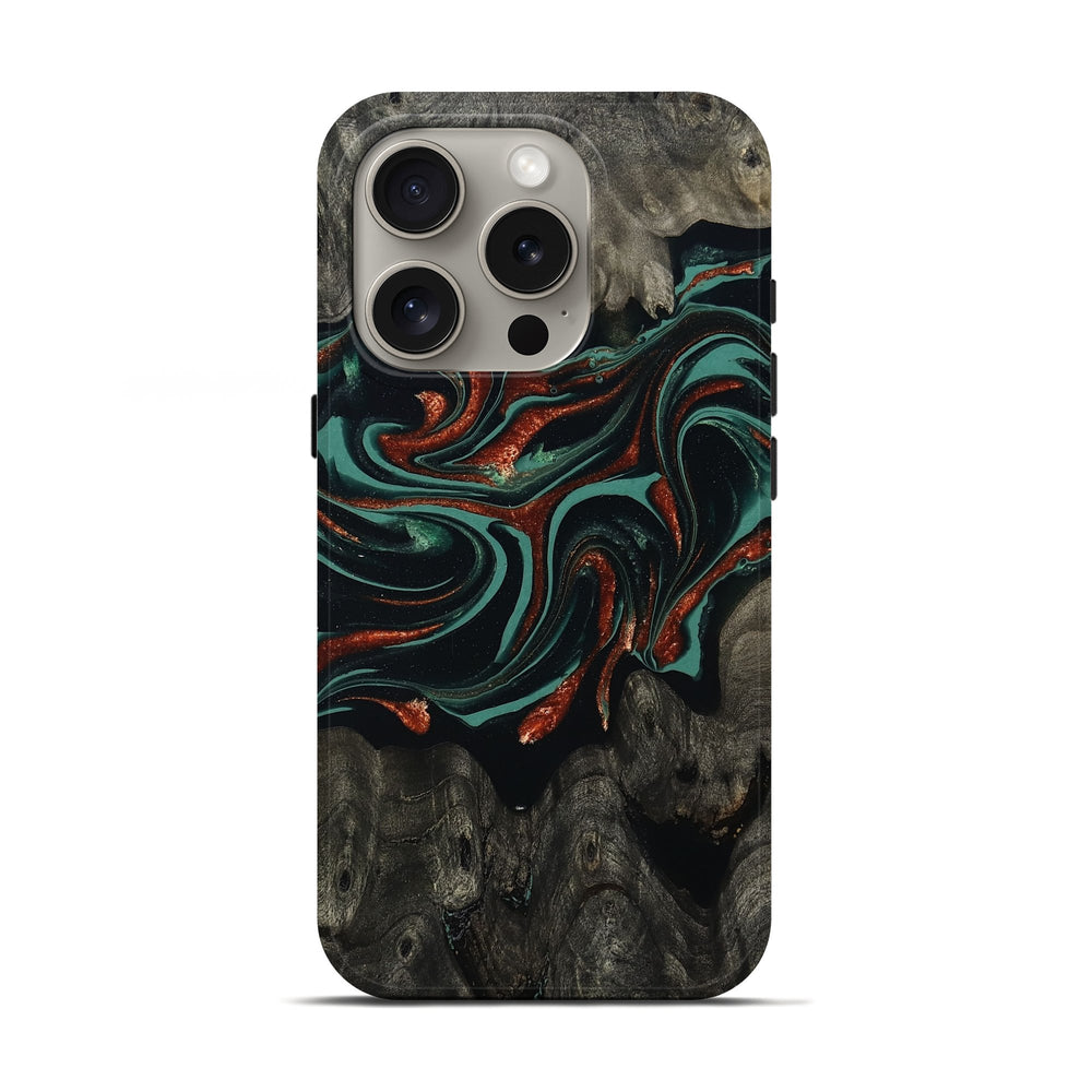 Our Live Edge cases are made from an amazing combination of stabilized wood burl and colored resin. Our stabilization process hardens the wood to protect against cracks and breaks. We do every step of the process at our shop in Northern Indiana. Perfectly fits the iPhone 16 Pro.