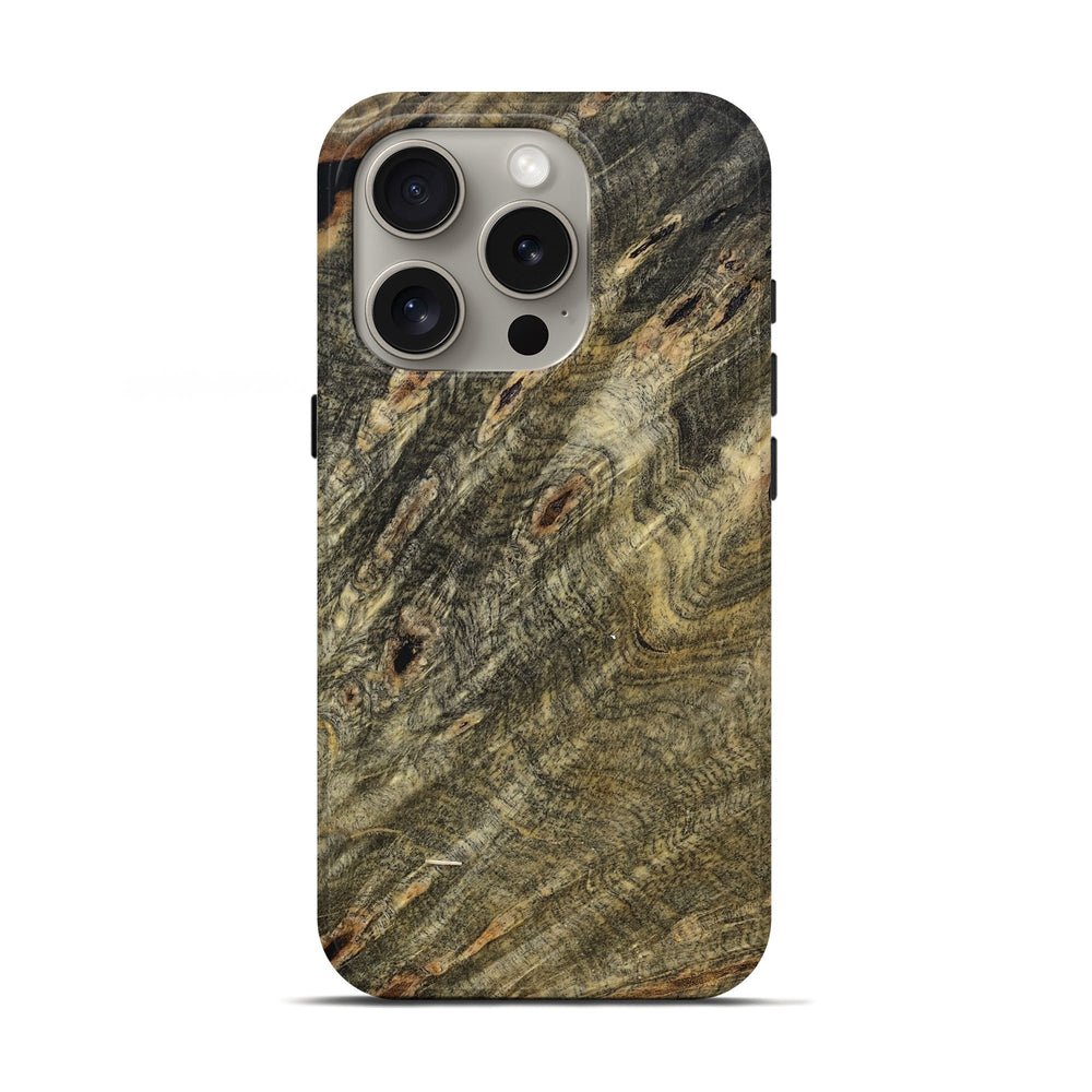 Our Live Edge cases are made from an amazing combination of stabilized wood burl and colored resin. Our stabilization process hardens the wood to protect against cracks and breaks. We do every step of the process at our shop in Northern Indiana. Perfectly fits the iPhone 16 Pro.